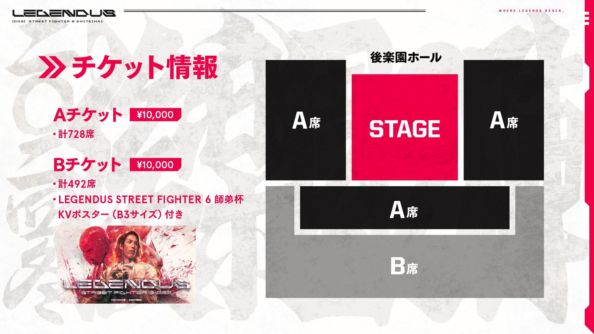 Bチケット 10,000円 492席 ※第1回 LEGENDUS STREET FIGHTER 6 師弟杯 KVポスター(B3サイズ)付き
